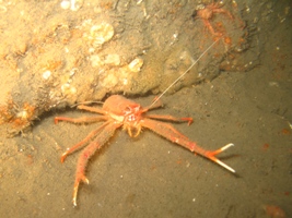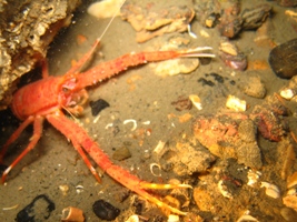 We had a good dive on a wreck which might be the 'Intent', but any identifying marks have either been removed long ago or never been found. 35m to the sea bed, four huge boilers standing proud in the centre, a healthy poulation of bib, squat lobsters and urchins with occasional outcrops of anemones.